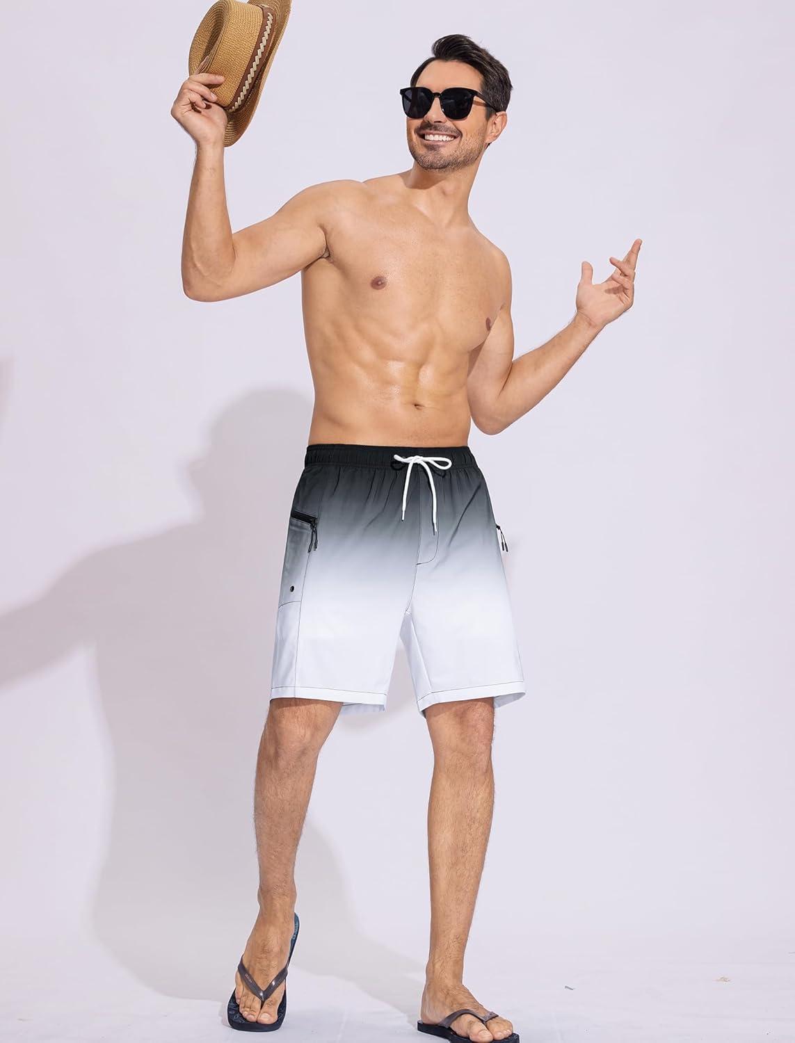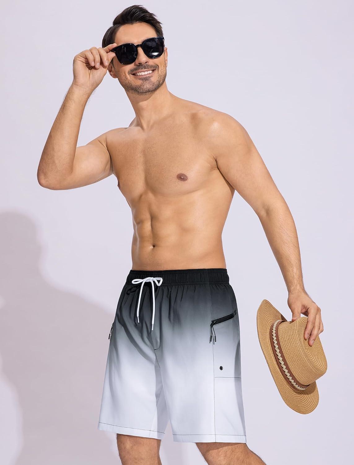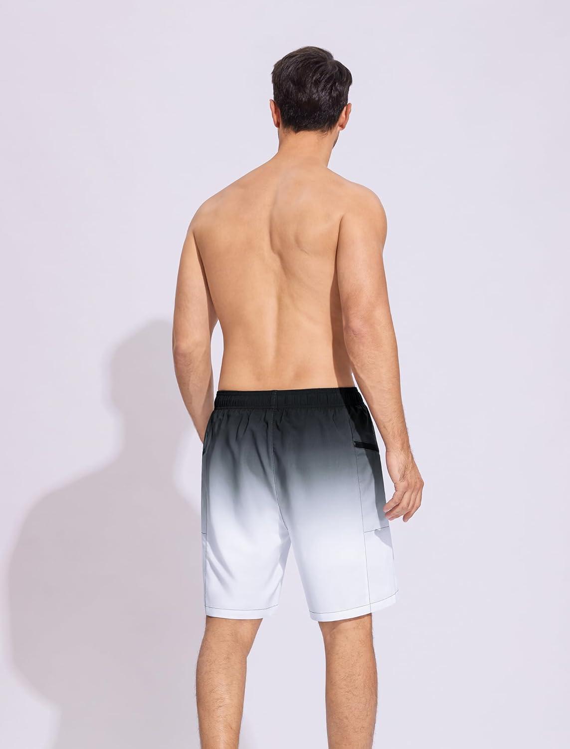 SILKWORLD 7 Inch Mens Swim Trunks with Compression Liner Quick-Dry Bathing Suit with Zipper Pockets(Black Grey Gradient)