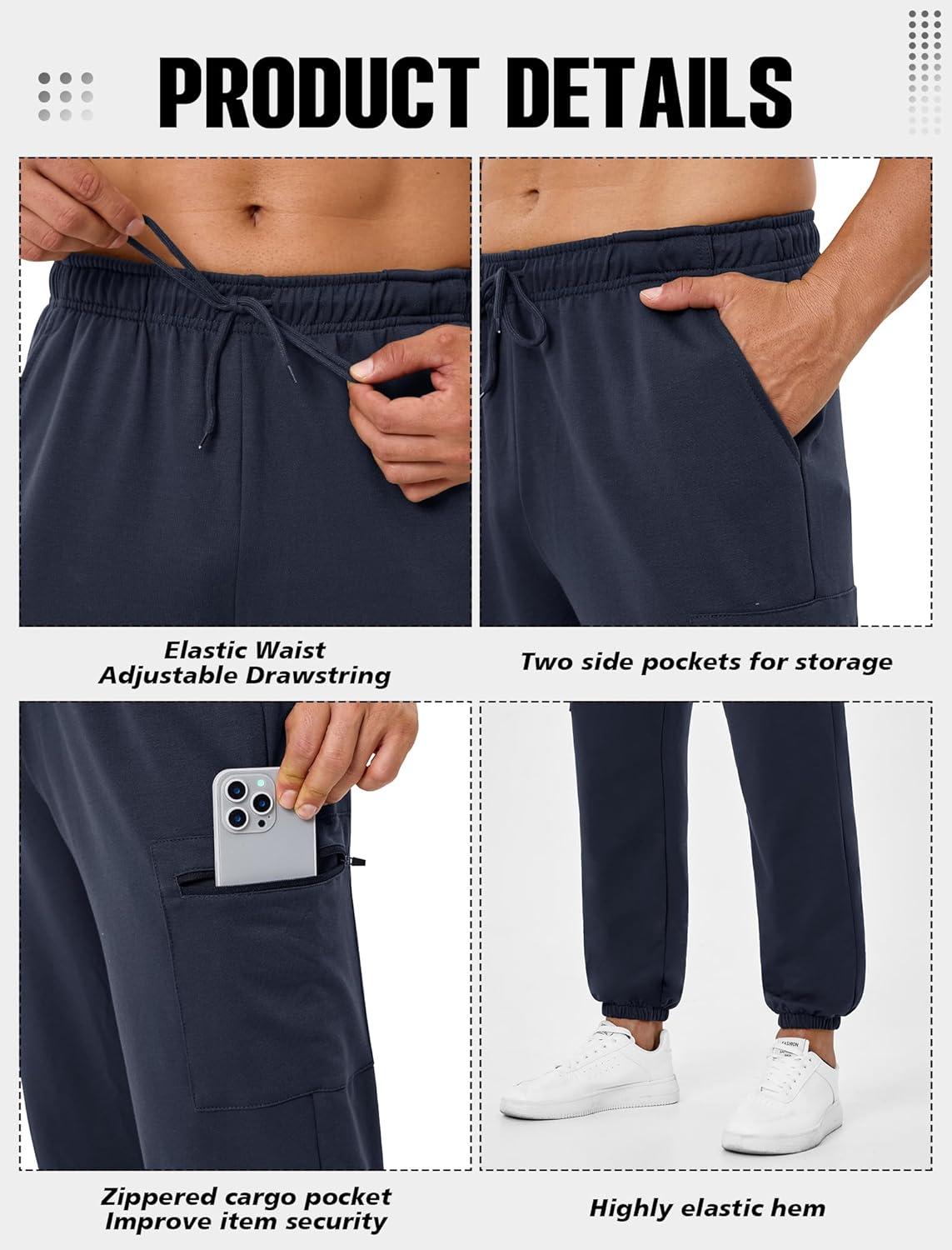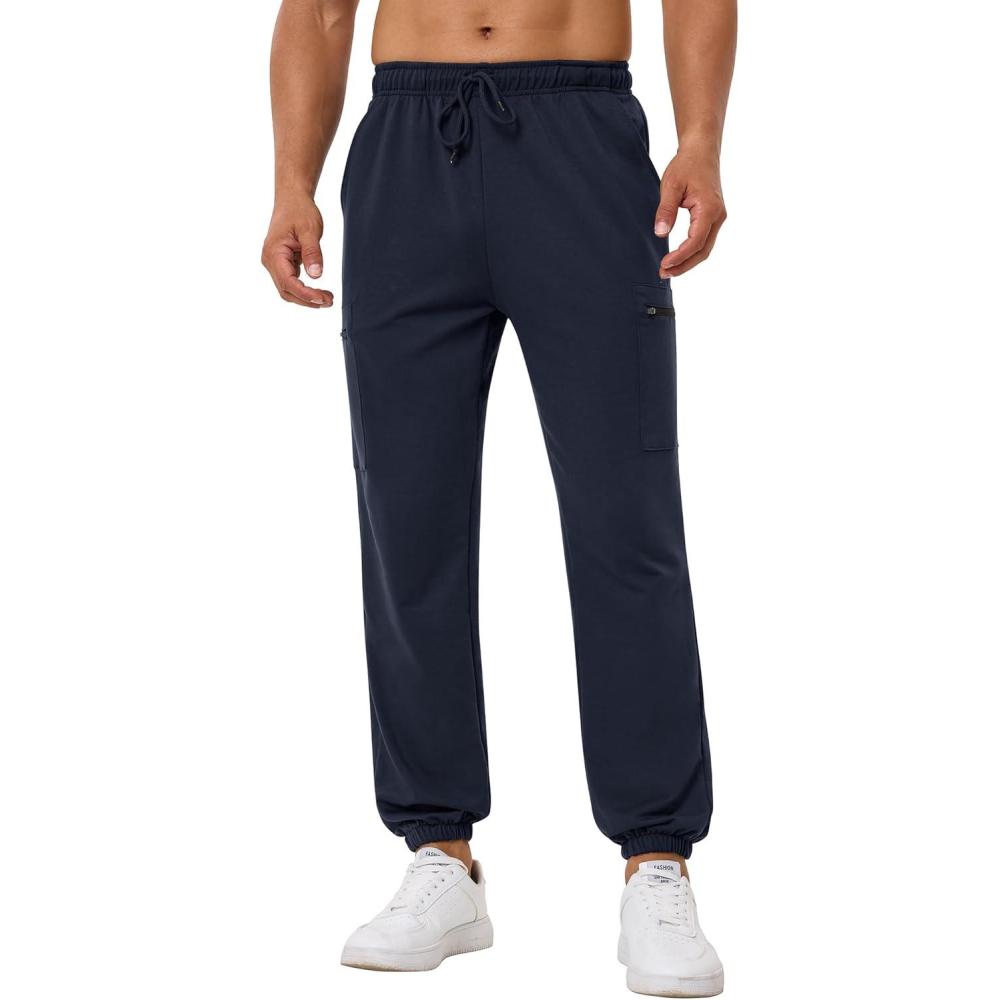 SILKWORLD Mens Jogger Sweatpants Casual Baggy Lounge Pants Cargo Athletic Pants with Zipper Pockets(A003-navy Blue)
