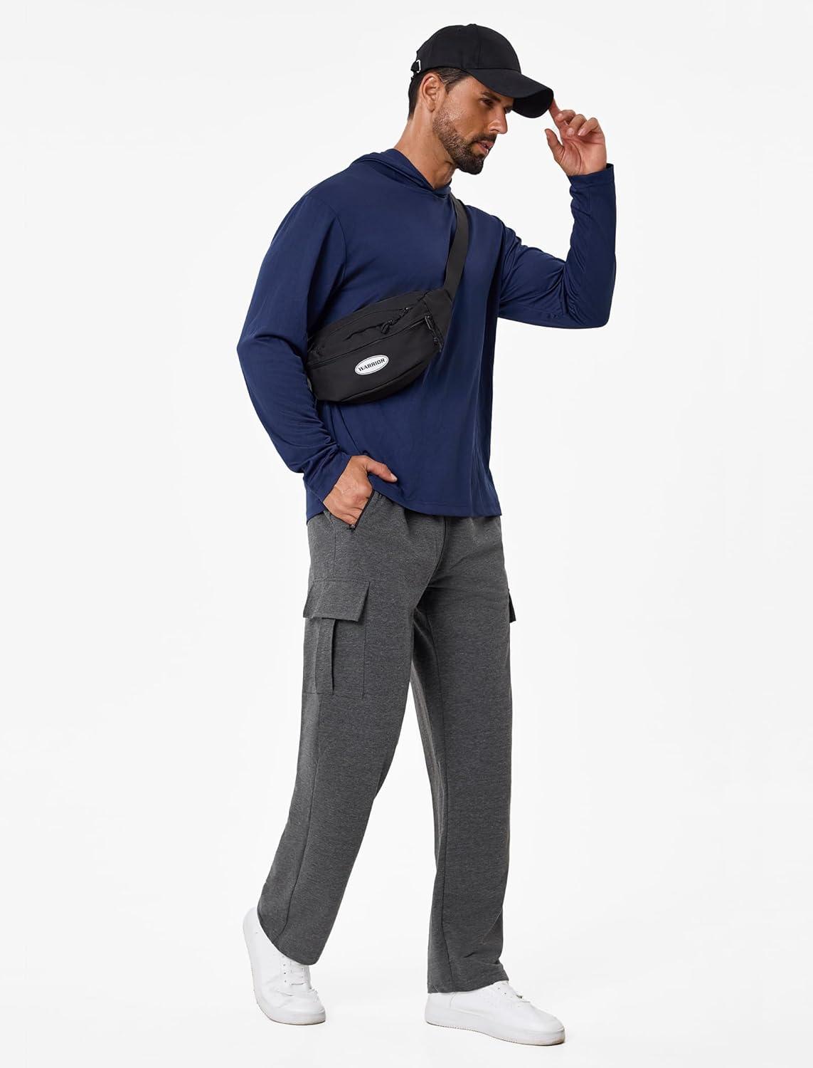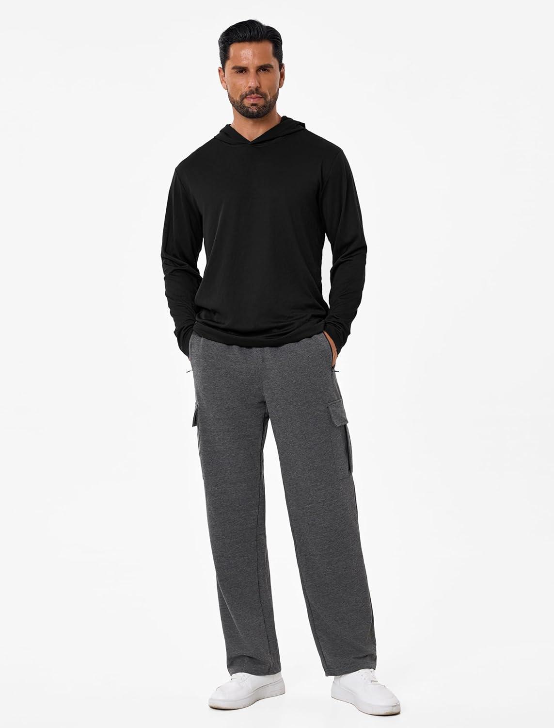 SILKWORLD Mens Sweatpants Cargo Pants Open Bottom Casual Athletic Gym Lounge Joggers with Zipper Pockets(Style B-black)