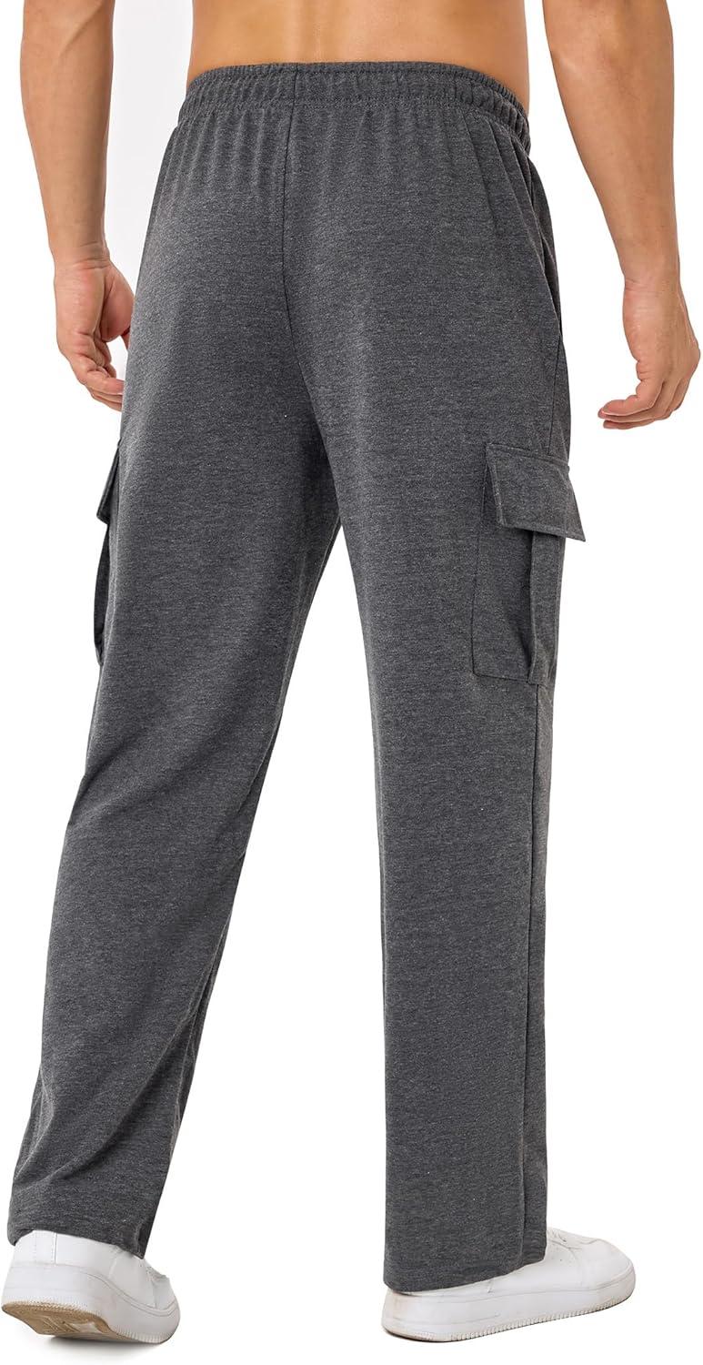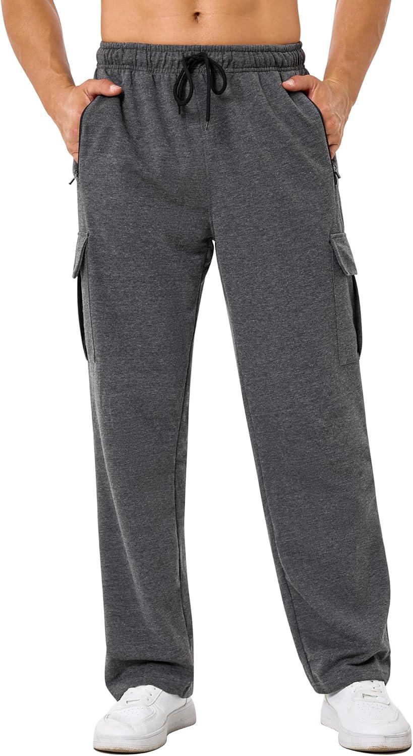 SILKWORLD Mens Sweatpants Cargo Pants Open Bottom Casual Athletic Gym Lounge Joggers with Zipper Pockets(Style B-dark Grey)