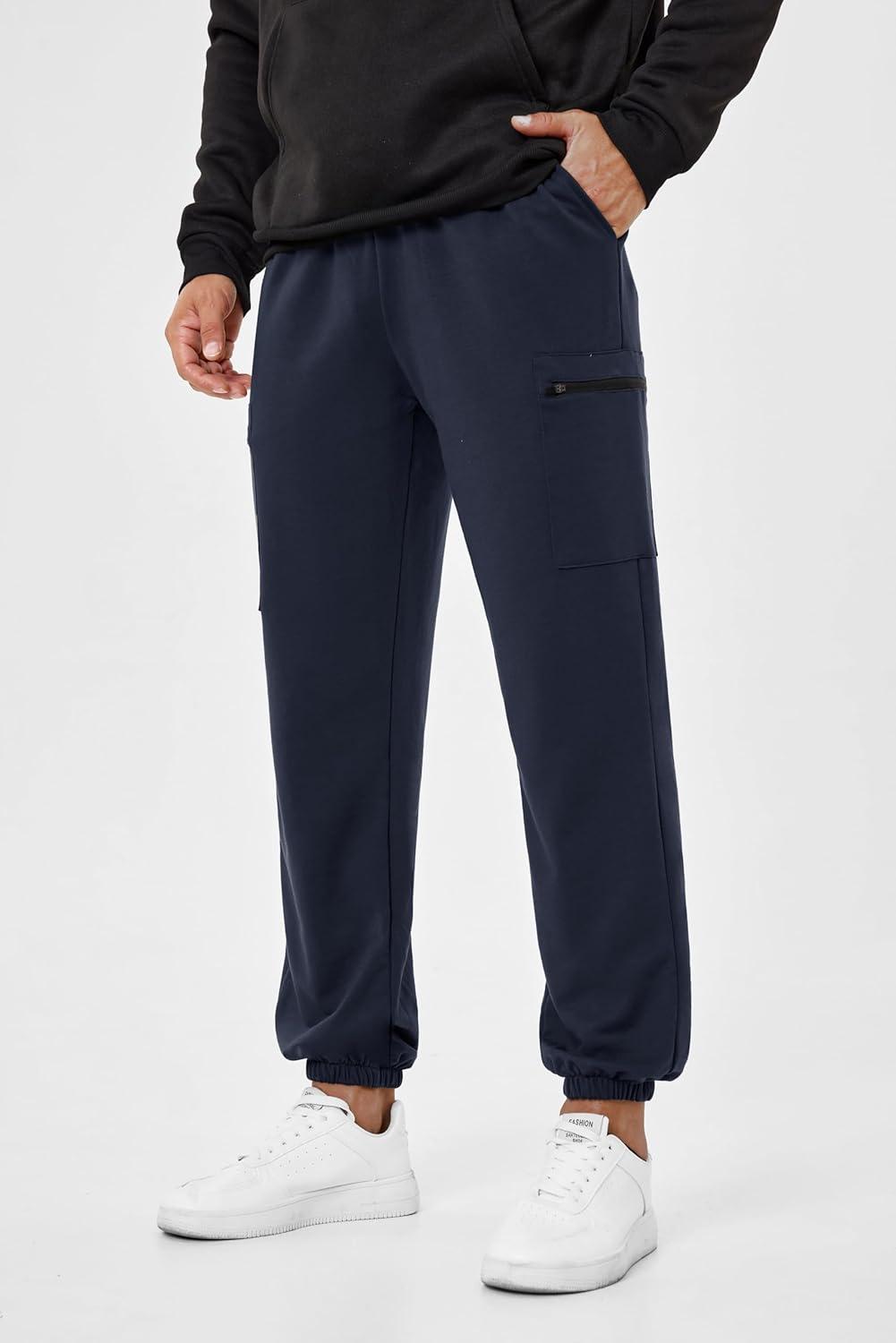 SILKWORLD Mens Sweatpants Tapered Athletic Joggers Workout Running Jogging Track Pants with Zipper Pockets(A003-navy Blue)