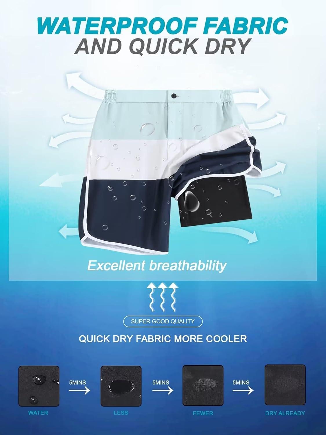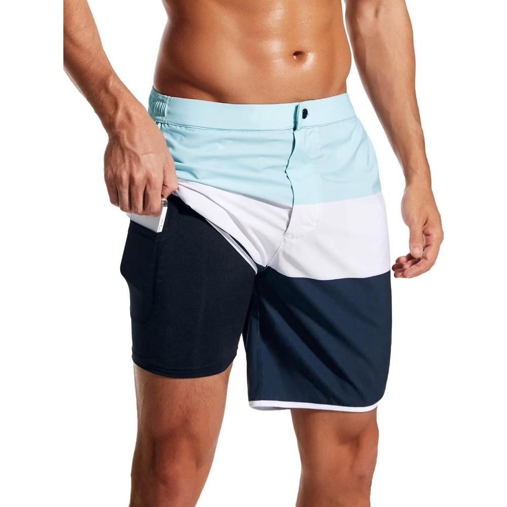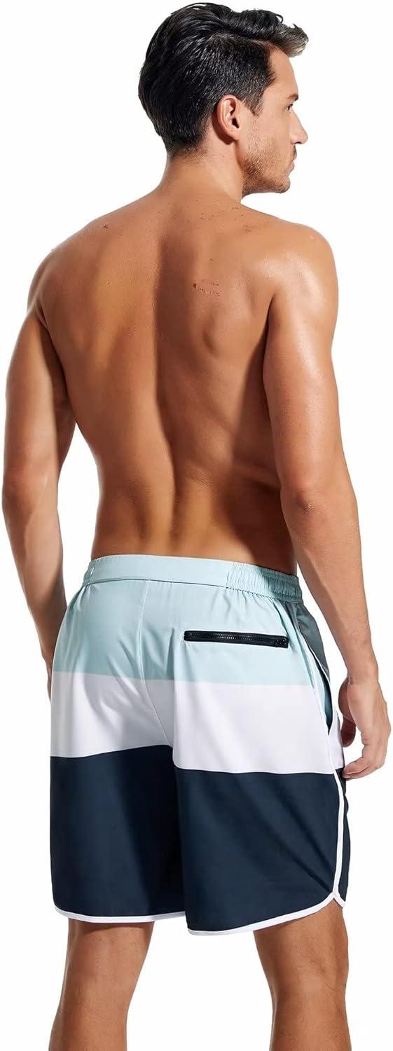 SILKWORLD Mens Swim Trunks Front Zipper Fly Quick Dry Beach Shorts with Compression Liner and Back Zipper Pockets