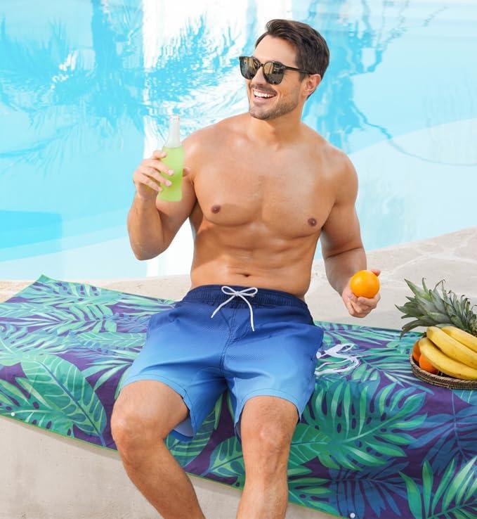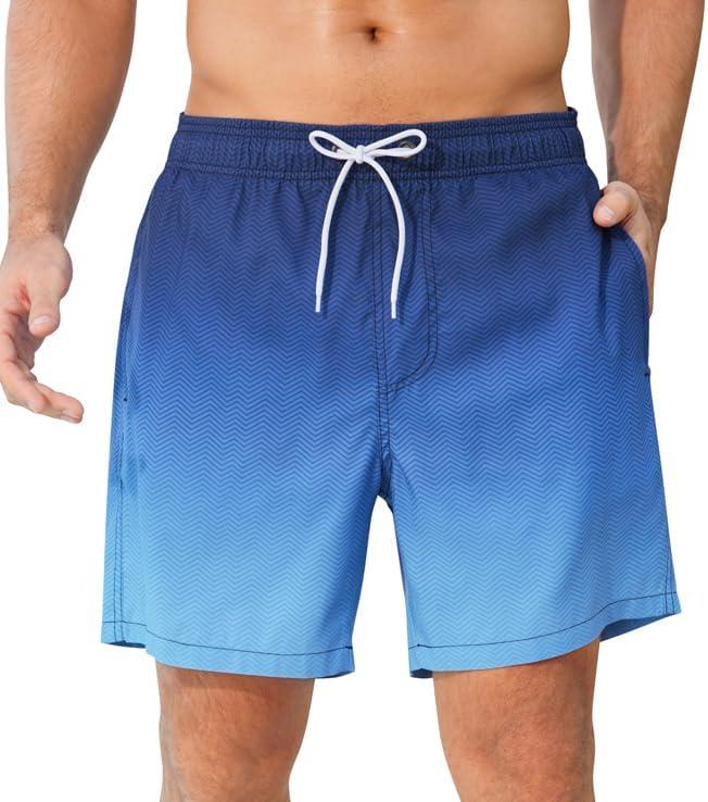SILKWORLD Men’s Swim Trunks Quick Dry Beach Shorts with Pockets(Lake Blue Gradient)