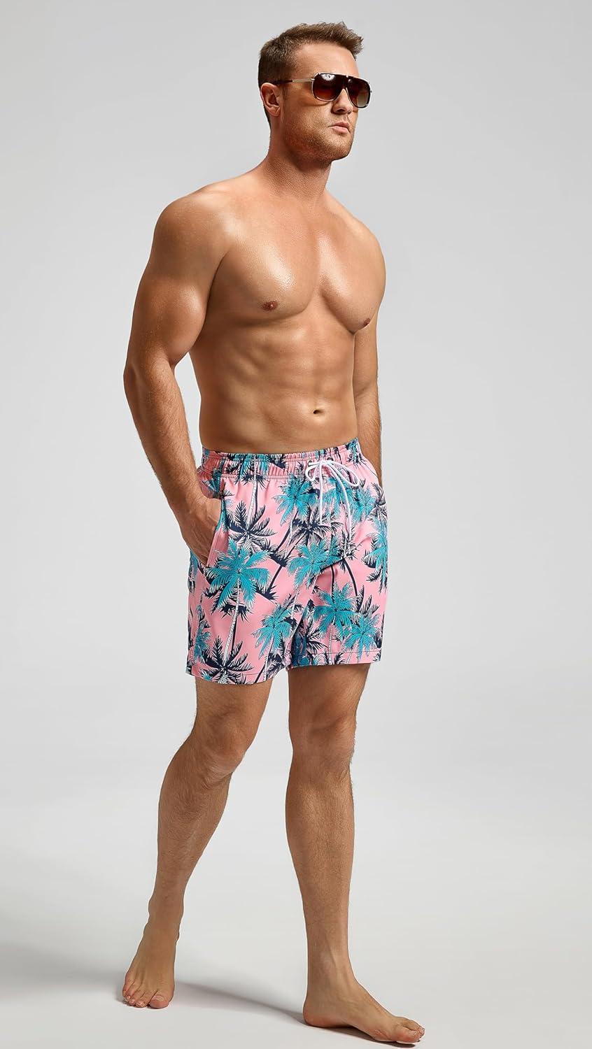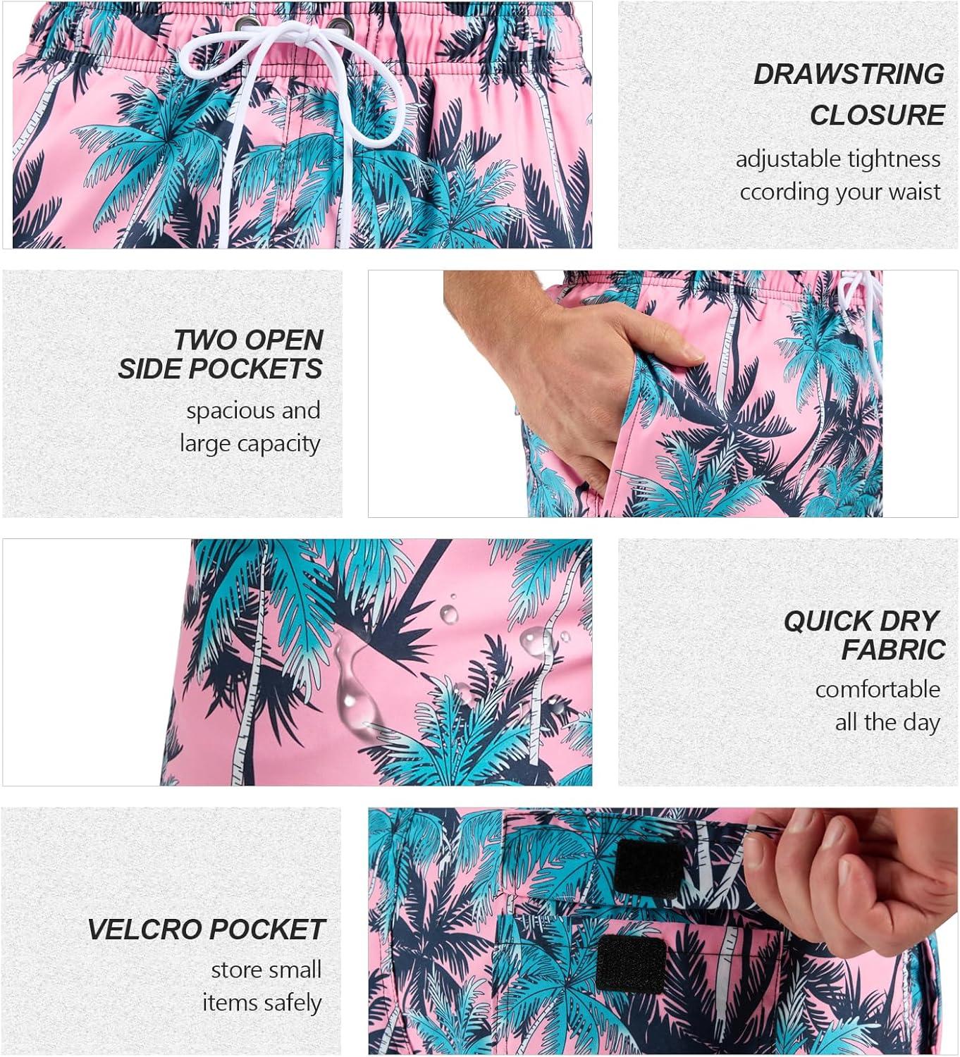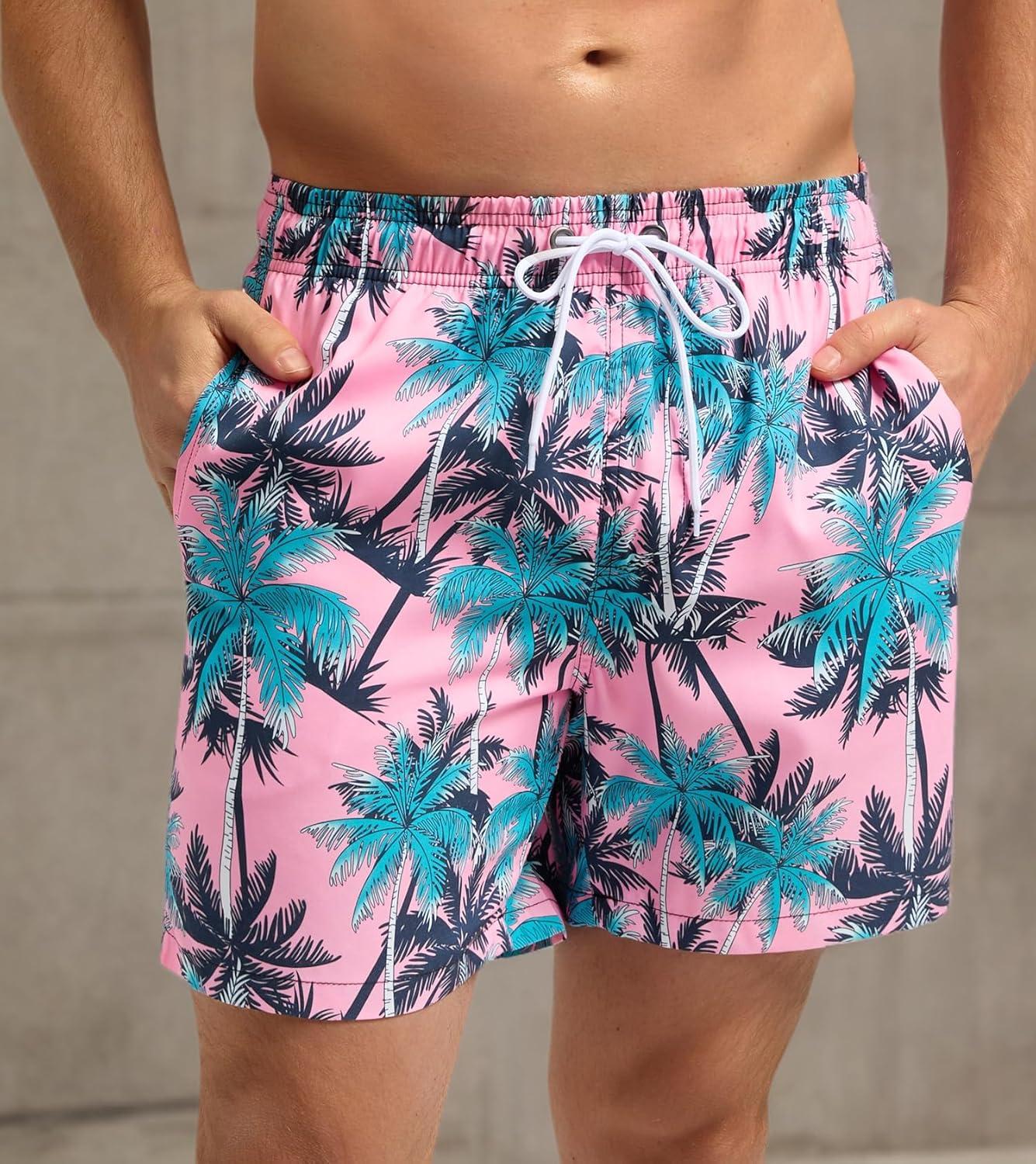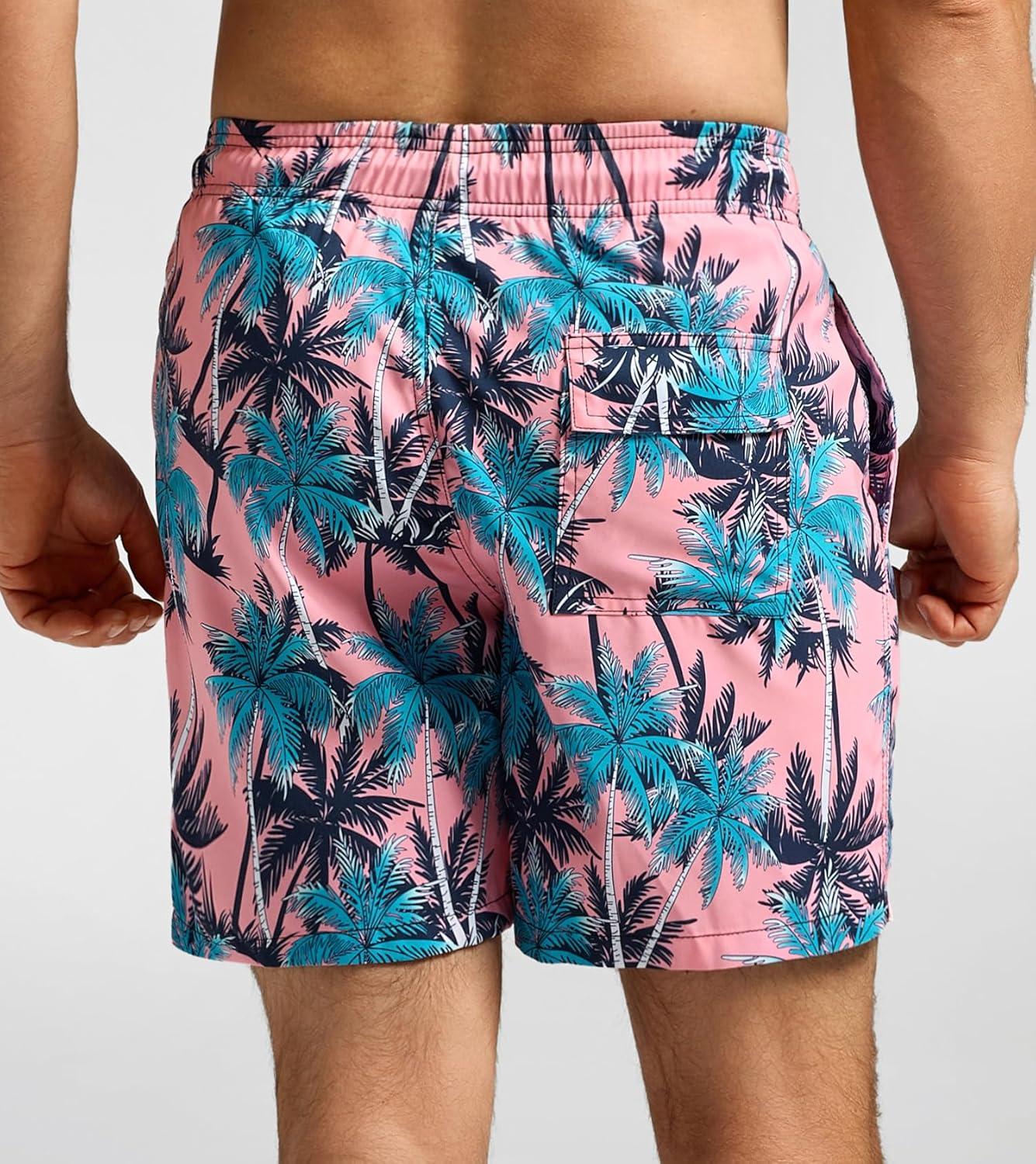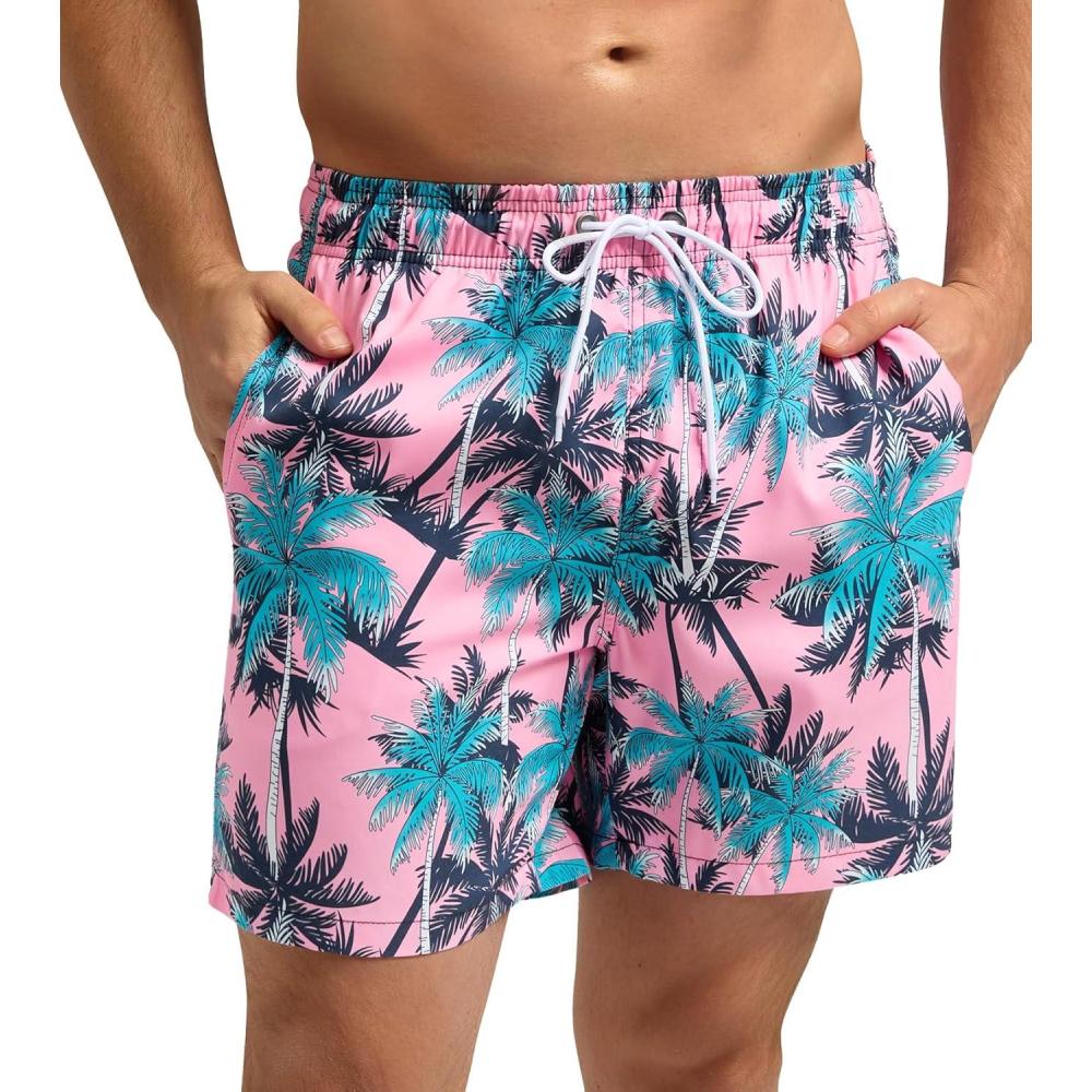 SILKWORLD Men’s Swim Trunks Quick Dry Beach Shorts with Pockets(Coconut Tree(pink))