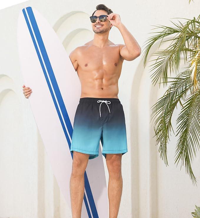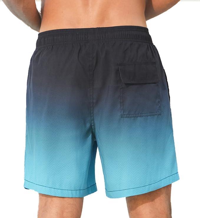 SILKWORLD Men’s Swim Trunks Quick Dry Beach Shorts with Pockets(Lake Blue Gradient)