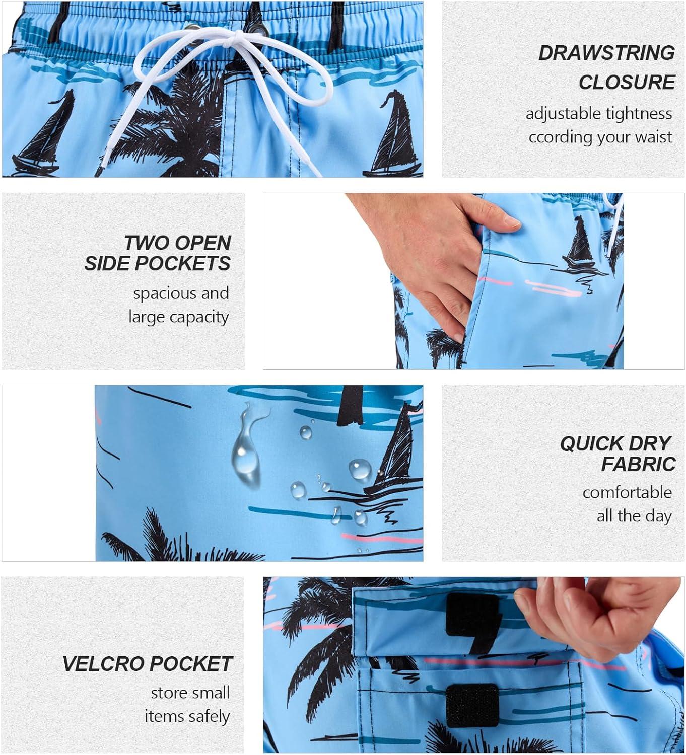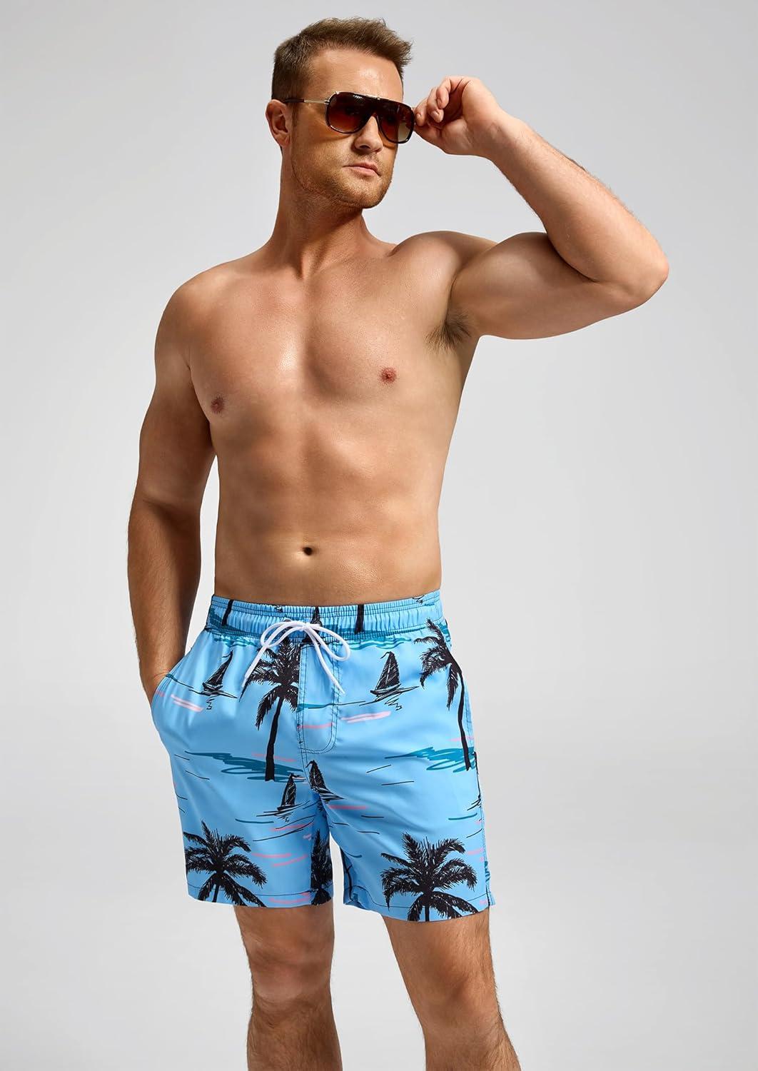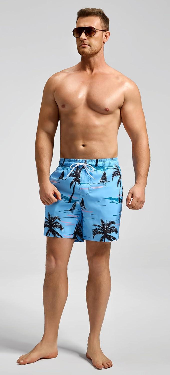 SILKWORLD Men’s Swim Trunks Quick Dry Beach Shorts with Pockets(Morning Coast)
