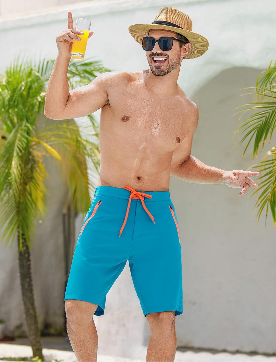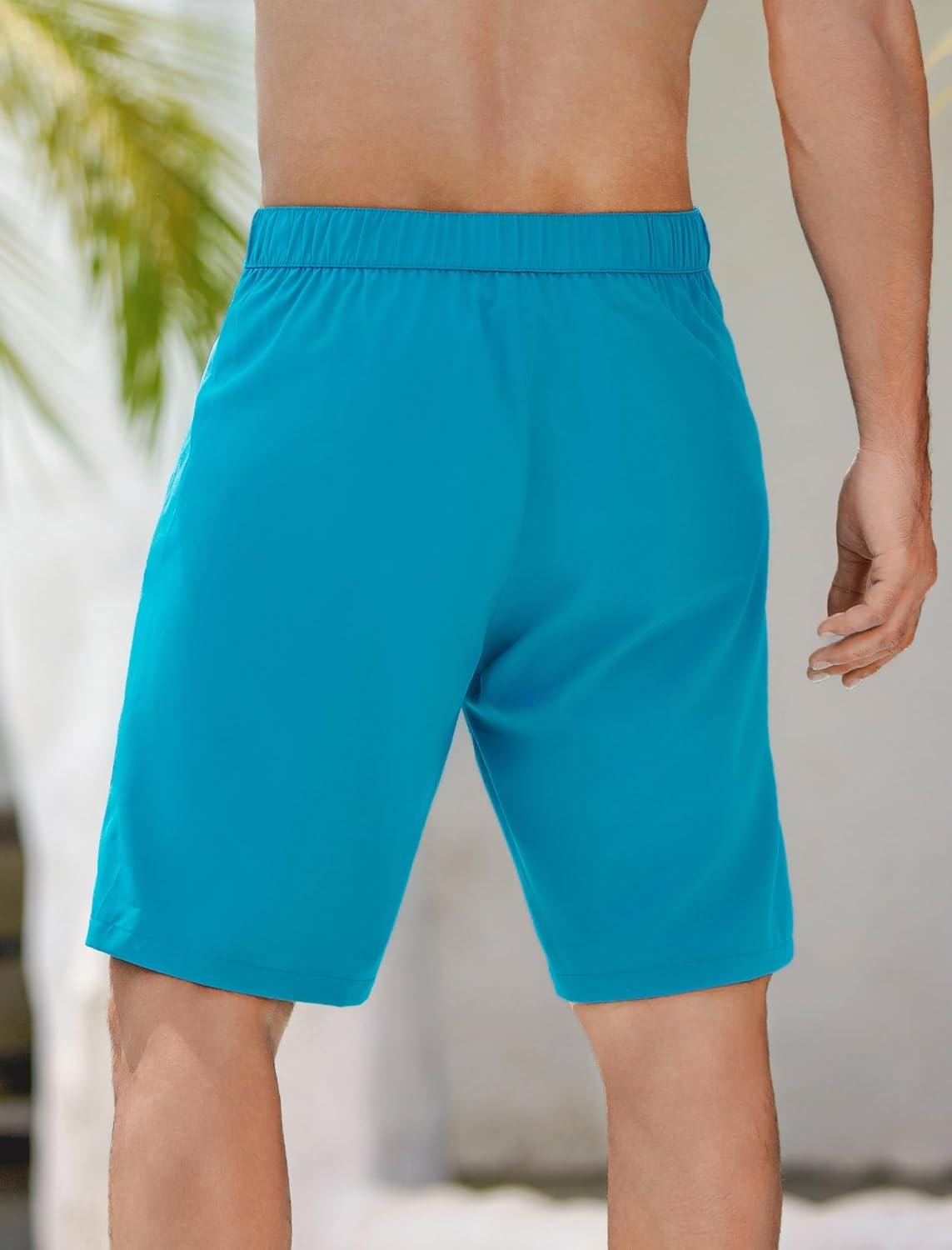 SILKWORLD Men’s Swim Trunks Quick-Dry Board Shorts 9″ Bathing Suits with Zipper Pockets – No Mesh Liner(Peacock Blue)