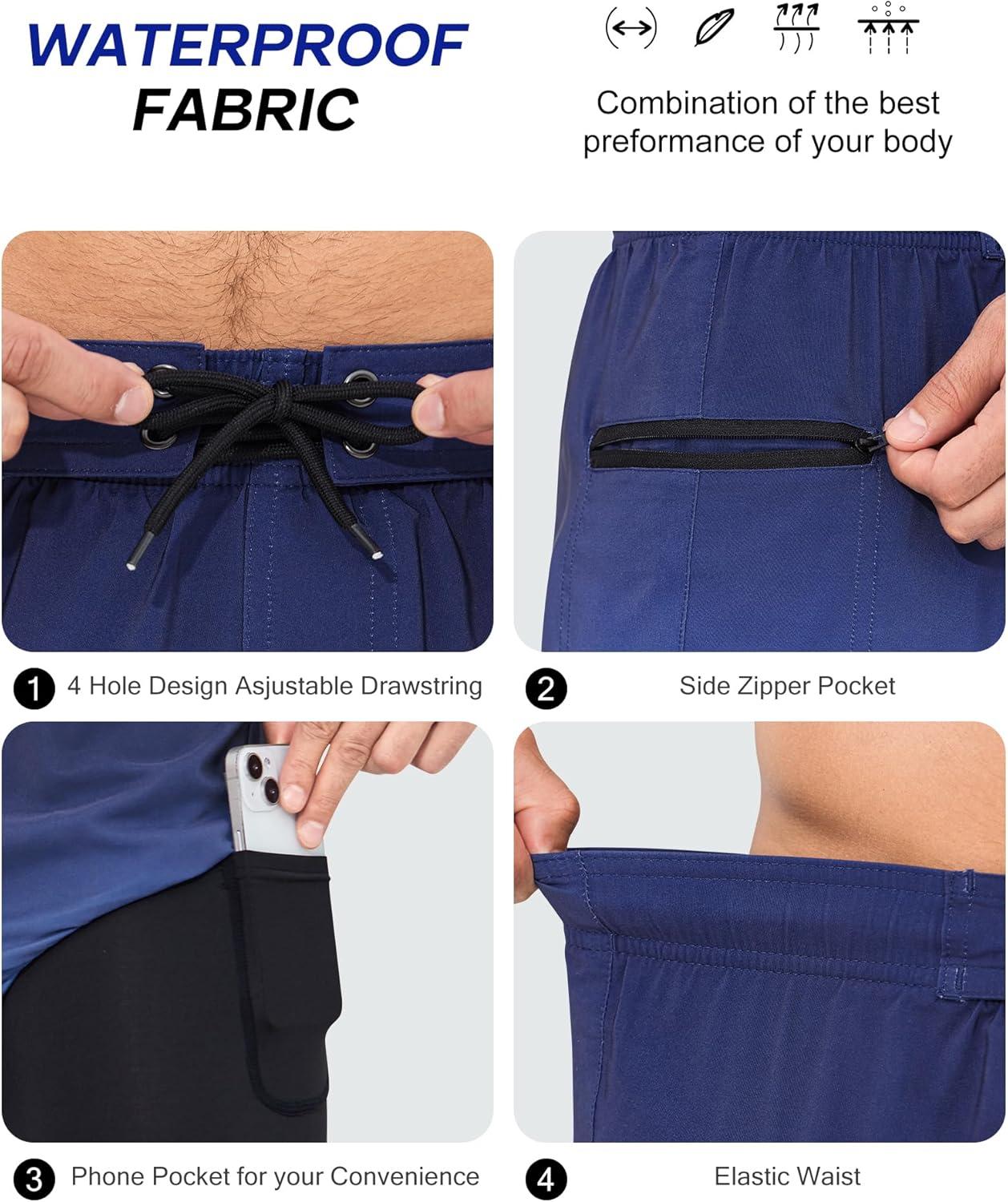 SILKWORLD Men’s Swim Trunks with Compression Liner 9″ Swimming Trunk 2 in 1 Beach Quick Dry Shorts with Zipper Pocket(Dark Grey)
