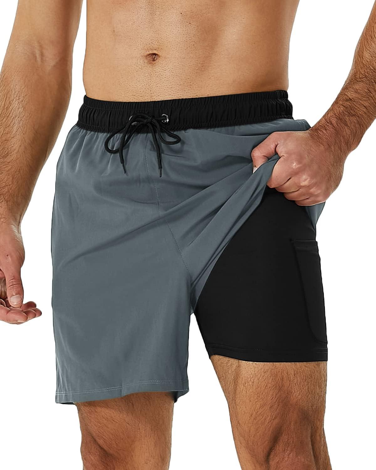 imageSILKWORLD Mens Swimming Trunks with Compression Liner Quick Dry Beach Shorts Swimsuit